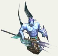 受龙王派遣,手持三叉长戟、盾牌,尽职尽责巡卫海域和岛屿的半人半鱼怪物。
